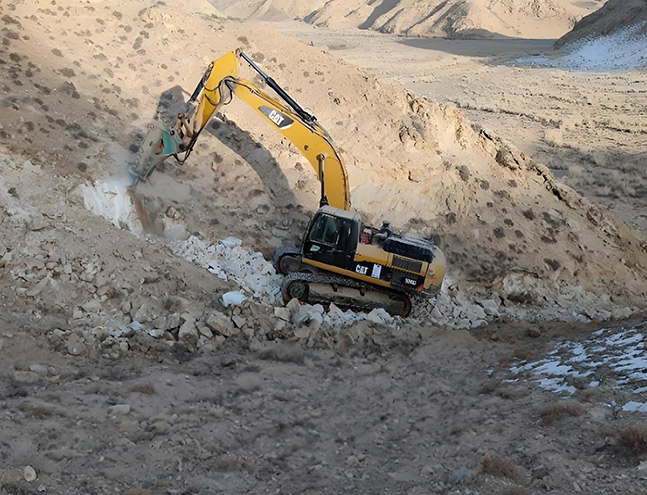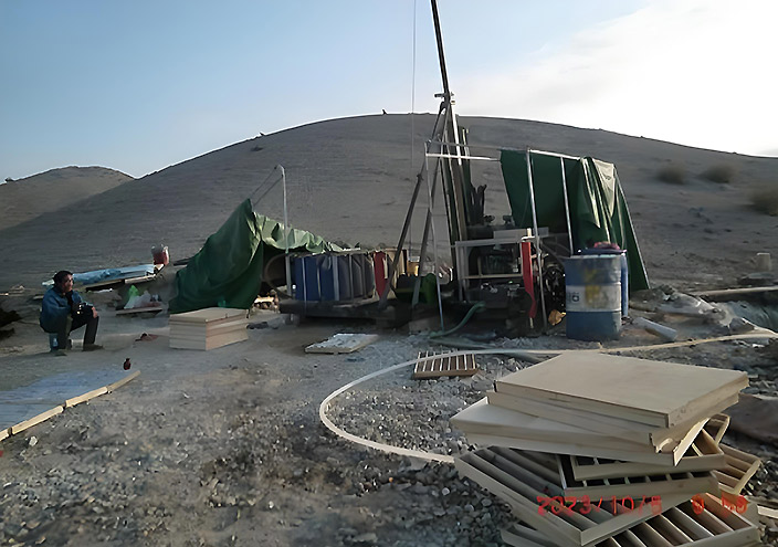 共施工钻孔38个,总进尺11,837m。钻孔深度最大613m,大部孔深200-400m不等。一部分深度大于400m的钻孔没有穿透大理岩,未见到基地基岩。多年来,来源公司对卡森布拉克矿区共计施工钻孔83个,总进尺16,905m。2023年,对矿区外的大理岩带施工了2个钻孔,孔深分别为302m、264n,总进尺566m,对矿区外大理岩带做了初步了解。