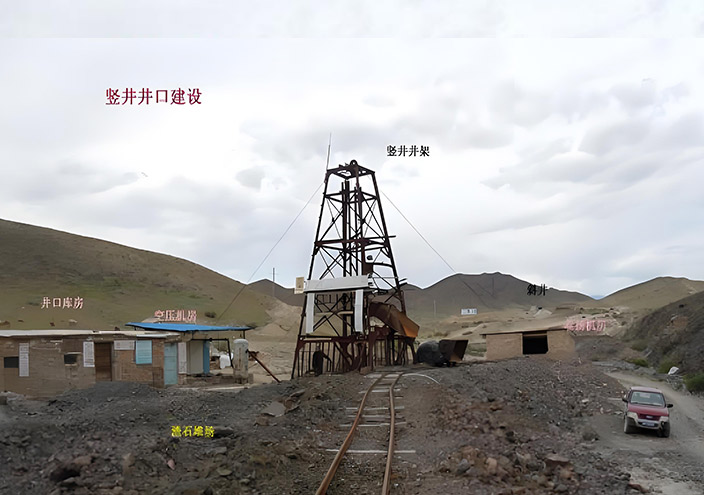 矿区内施工有:竖井(SJ)1眼、斜井(XJ1)1条、斜坡道(XJ2)1条,以及井下巷道工程(包括马头门、石门、沿脉、穿脉、天井、漏斗、通风井等)。
